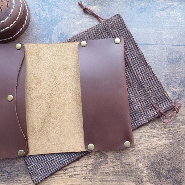 - Cuir de Haute Qualité : Nous utilisons un cuir naturel d’une épaisseur exceptionnelle d’environ 1,5 millimètre, offrant une robustesse inégalée tout en restant souple au toucher.